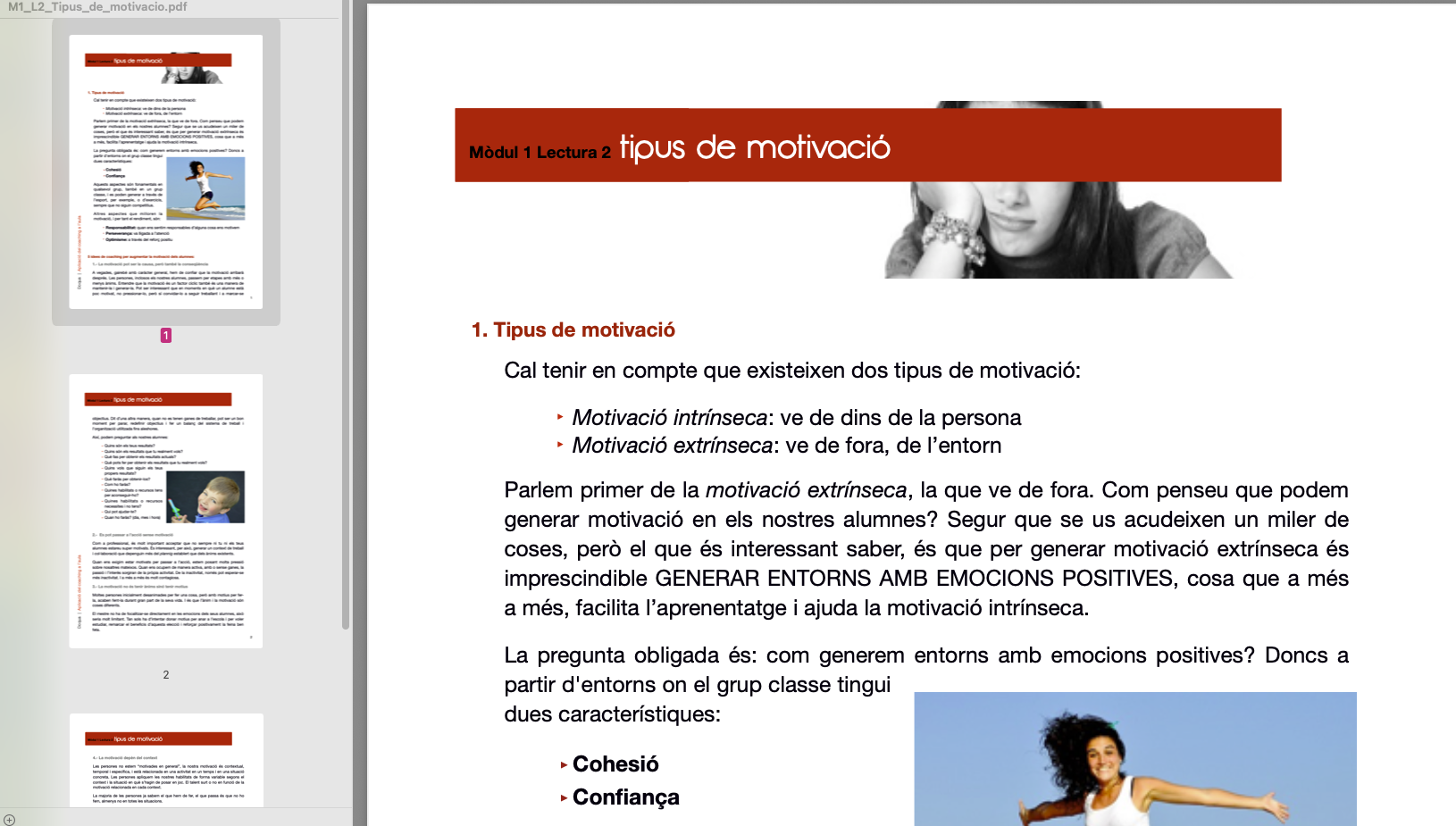 M’ha semblat un curs molt interessant i útil. Et convida a fer una reflexió profunda de la nostra tasca docent i et dona les eines necessàries per millorar la comunicació amb famílies i alumnes, fomentar la motivació dels alumnes, etc. És molt recomanable!